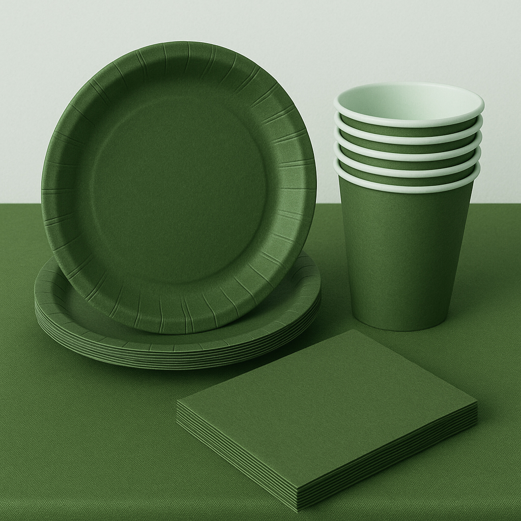 Zestaw Imprezowy Ciemnozielony – Serwetki + Kubki + Talerzyki + Obrus