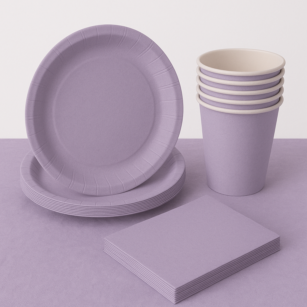 Elegancka, głęboka lawenda wprowadzi szyk na każdym przyjęciu! Ten kompletny zestaw to szybki i wygodny sposób na udekorowanie stołu w spójnej kolorystyce – idealny na urodziny, imprezy firmowe, wieczory tematyczne czy przyjęcia w domu i ogrodzie.