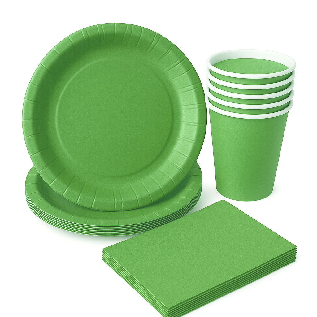 Zestaw Imprezowy – Jasnozielony (Serwetki 20 szt., Kubki 6 szt., Talerzyki 6 szt.)