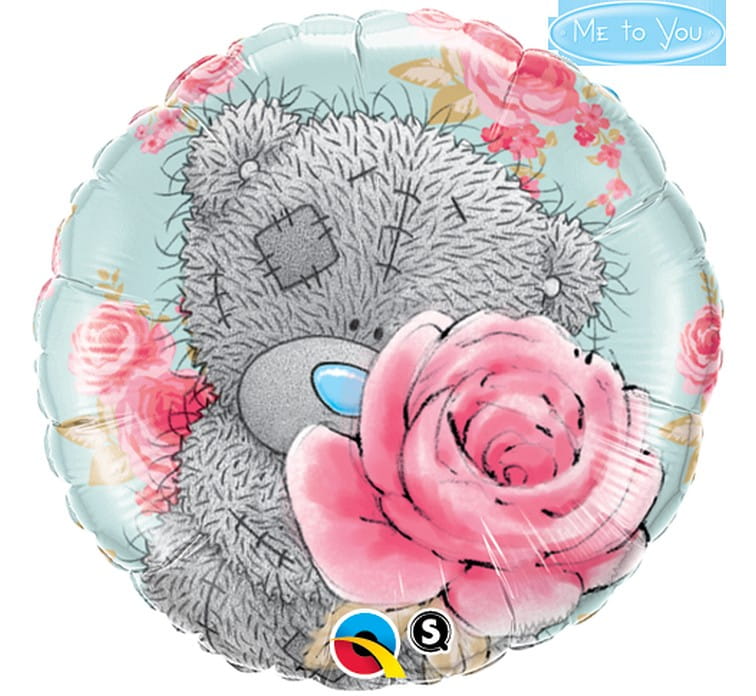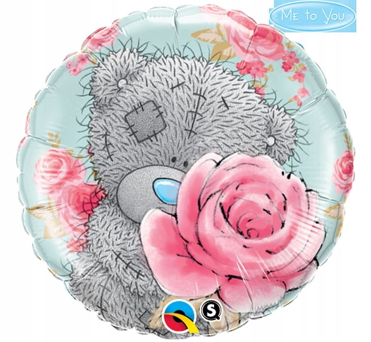 Balon foliowy 18" QL CIR "Teddy: Happy Birthday i róża" ST ASORT
