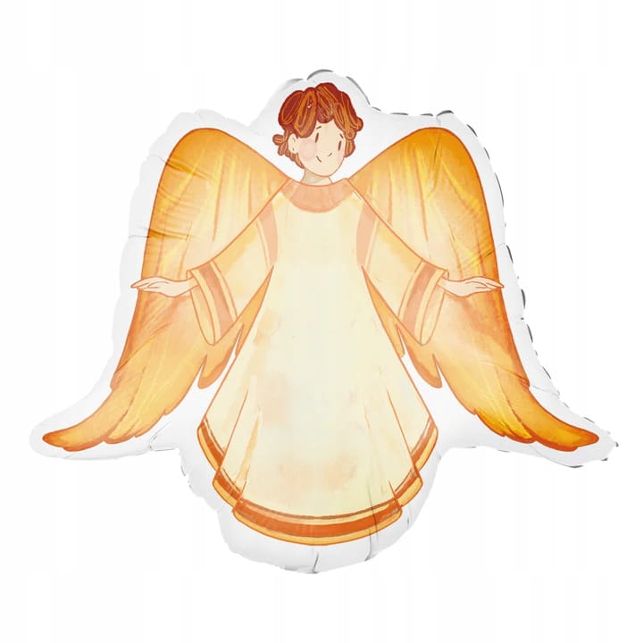 Balon foliowy w kształcie aniołka w ciepłych pastelowych kolorach. Doskonale sprawdzi się jako oprawa przyjęcia z okazji chrztu, komuni a także w czasie bożonarodzeniowych spotkań z najmłodszymi.