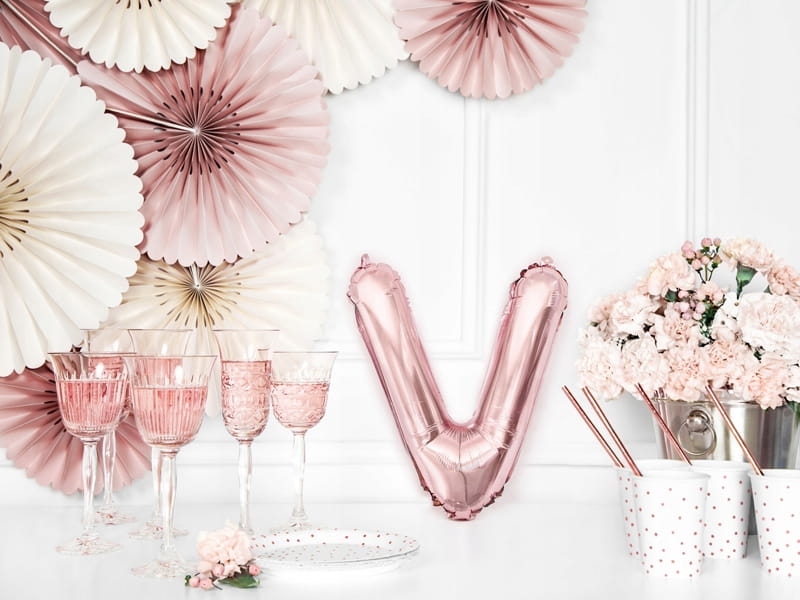 Balon foliowy Litera V, różowe złoto, 35 cm.