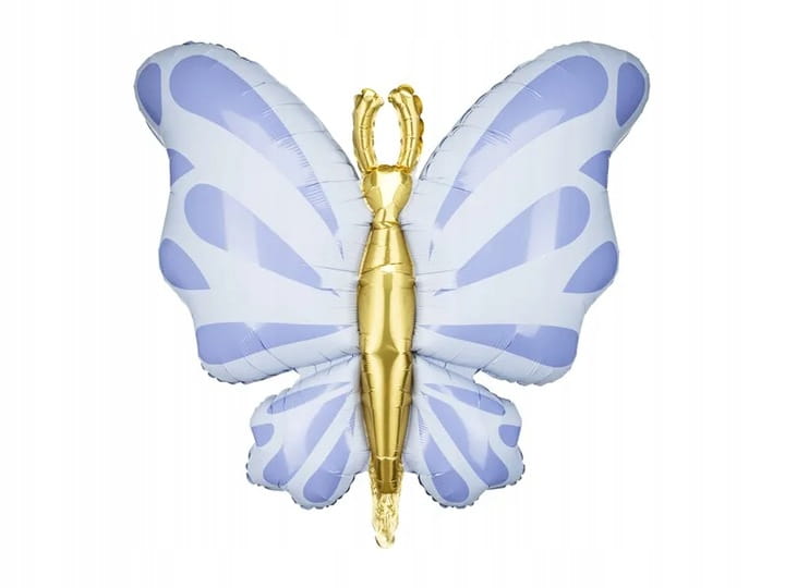 Ten piękny, duży balon foliowy w kształcie motyla to idealna dekoracja na różnorodne przyjęcia. Jego delikatne błękitne skrzydła w połączeniu ze złotym ciałem dodadzą elegancji każdemu wydarzeniu.