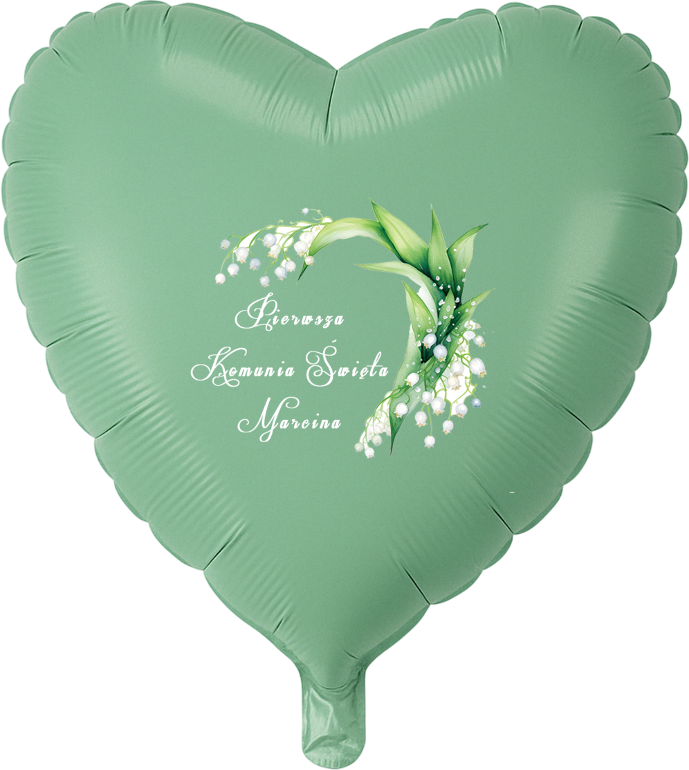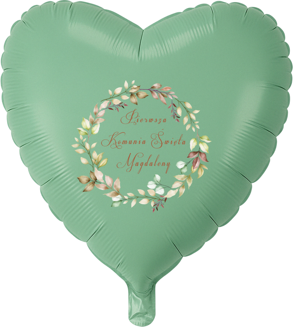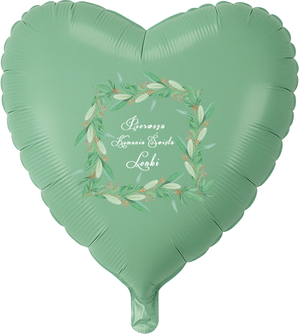 Zielony balon foliowy SERCE na Komunię personalizowany z wyborem wzoru