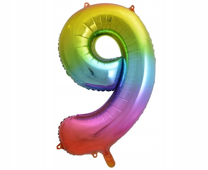 Balon foliowy cyfra 9, tęczowy 85 cm