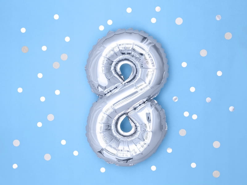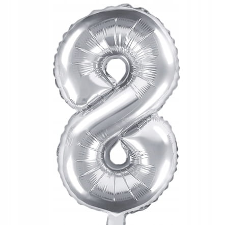 Balon foliowy liczba 8, srebrny, 35 cm.
