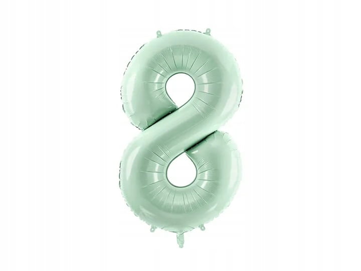 Balon foliowy w kształcie cyfry "8" w kolorze miętowym – idealny dodatek do dekoracji na urodziny, rocznice, jubileusze oraz inne uroczystości! Ten elegancki balon będzie doskonałym elementem każdej balonowej aranżacji.