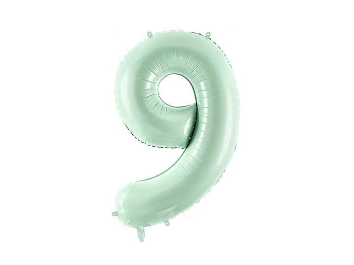 Balon foliowy w kształcie cyfry "9" w kolorze miętowym – idealny dodatek do dekoracji na urodziny, rocznice, jubileusze oraz inne uroczystości! Ten elegancki balon będzie doskonałym elementem każdej balonowej aranżacji.