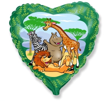 Balon foliowy serce zwierzęta z dżungli Safari