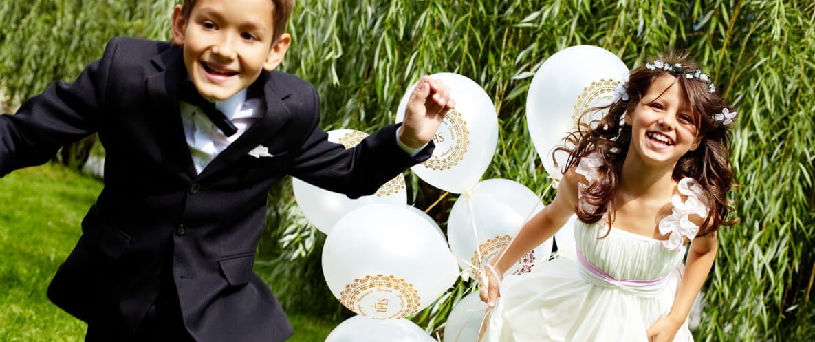 Balony komunijne białe z nadrukiem IHS