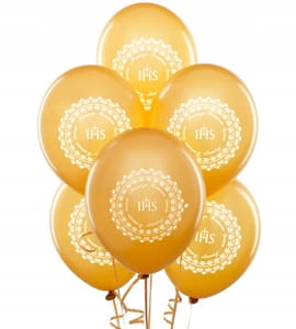 Balony komunijne złote nadruk Ornament IHS 10 szt.