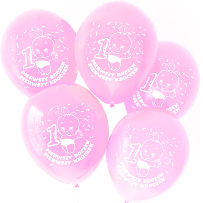 Balony na roczek j.różowe 5 szt