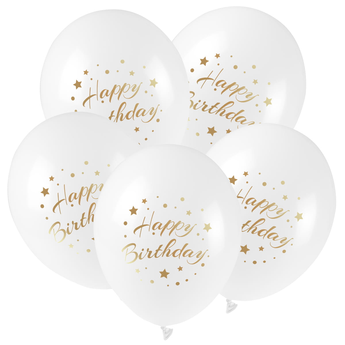 Balony urodzinowe napis Happy Birthday białe 5 szt