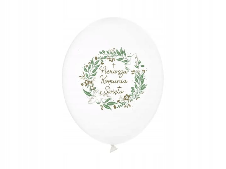 Podkreśl uroczysty charakter Pierwszej Komunii Świętej dzięki eleganckim balonom w pastelowej bieli z delikatnym nadrukiem.