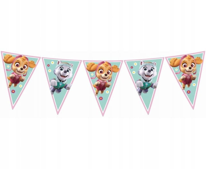 Foliowy baner flagi z nadrukiem Paw Patrol Skye and Everest. Baner idealnie się nada jako dekoracja na urodziny dla małej fanki tej bajki. Spraw, by przyjęcie Twojego dziecka było wyjątkowe i niezapomniane.