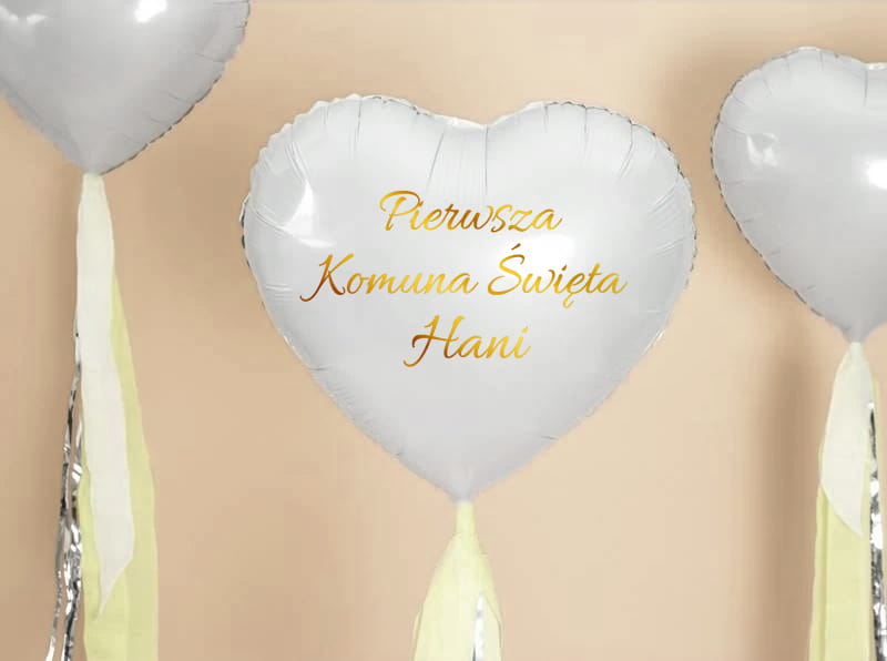 Biały Balon w Kształcie Serca Personalizowany, Komunijny
