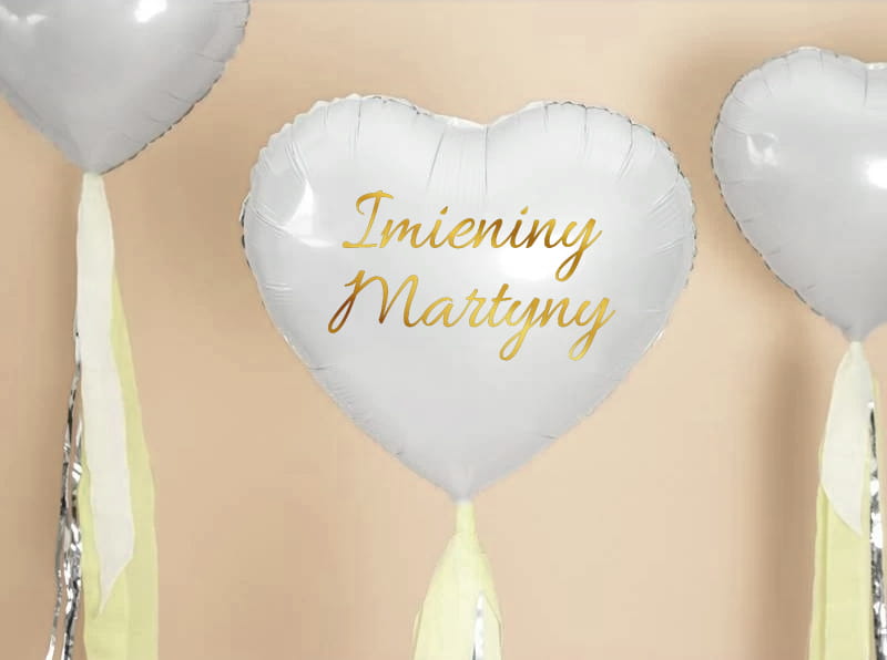 Biały Balon w Kształcie Serca Personalizowany na Imieniny