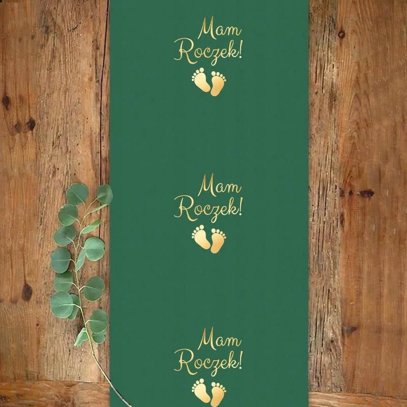 Bardzo elegancki bieżnik, z którym stworzysz niepowtarzalną dekorację uroczystego stołu. Dekorowany nadrukiem połyskujących złotych stópek oraz napisem Mam Roczek prezentują się wspaniale na stole. Jest eleganckim, ale też praktycznym dodatkiem, który idealnie wpisuje się w dziecięcy klimat. Niewinny i subtelny świetnie wpisuje się w najnowsze trendy. Całość prezentuje się ekskluzywnie i z pewnością oczaruje gości.