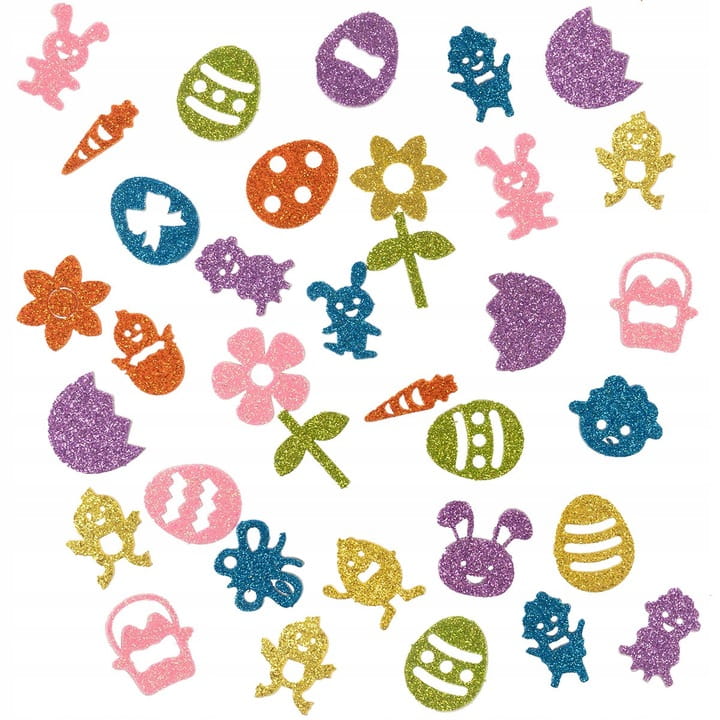 Piankowe naklejki brokatowe. Mix kolorowych wzorów wielkanocnych. Idealne do dekoracji wielkanocnych, kartek świątecznych, prac szkolnych. Świetnie nadają się do wszelkiego rodzaju aktywności twórczej, jak również do zdobienia projektów kreatywnych takich jak: kartki okolicznościowe, zeszyty, albumy, pudełka, opakowania prezentów i wielu innych. Naklejki możesz przykleić gdzie tylko chcesz.