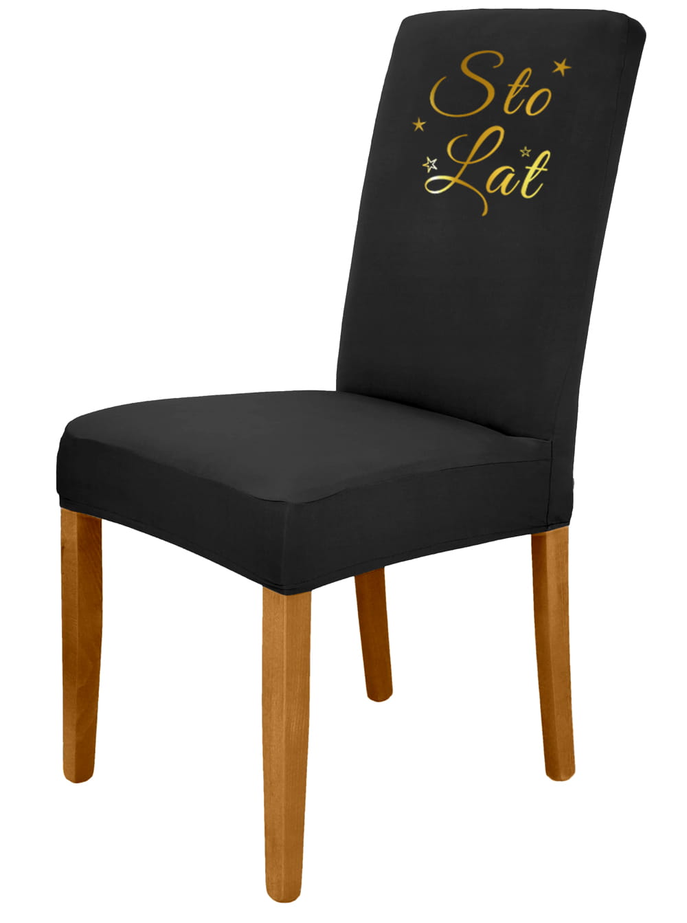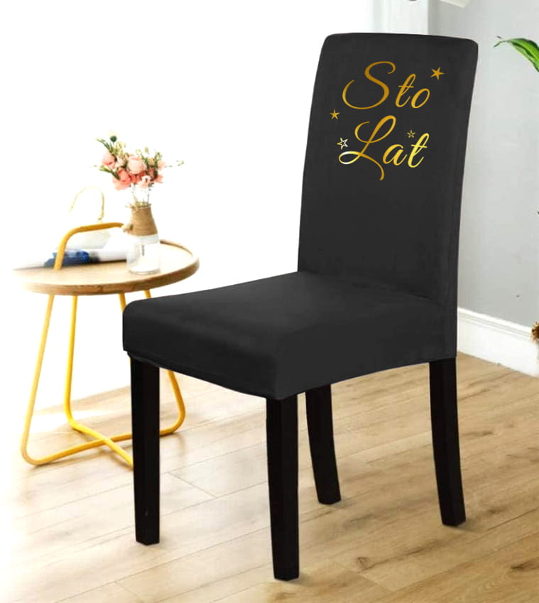 Czarny, Urodzinowy Pokrowiec na Krzesło z Napisem, 1 szt