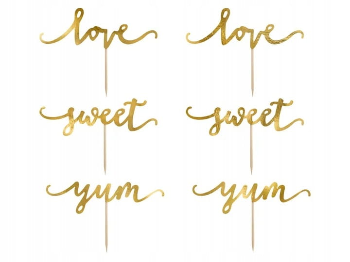 Dekoracje do muffinek Love, topper na tort -Elegant Bliss, w kolorze złotym. Wspaniały dodatek do tortu komunijnego, ozdoby słodkiego baru lub jako dodatek do stroików.