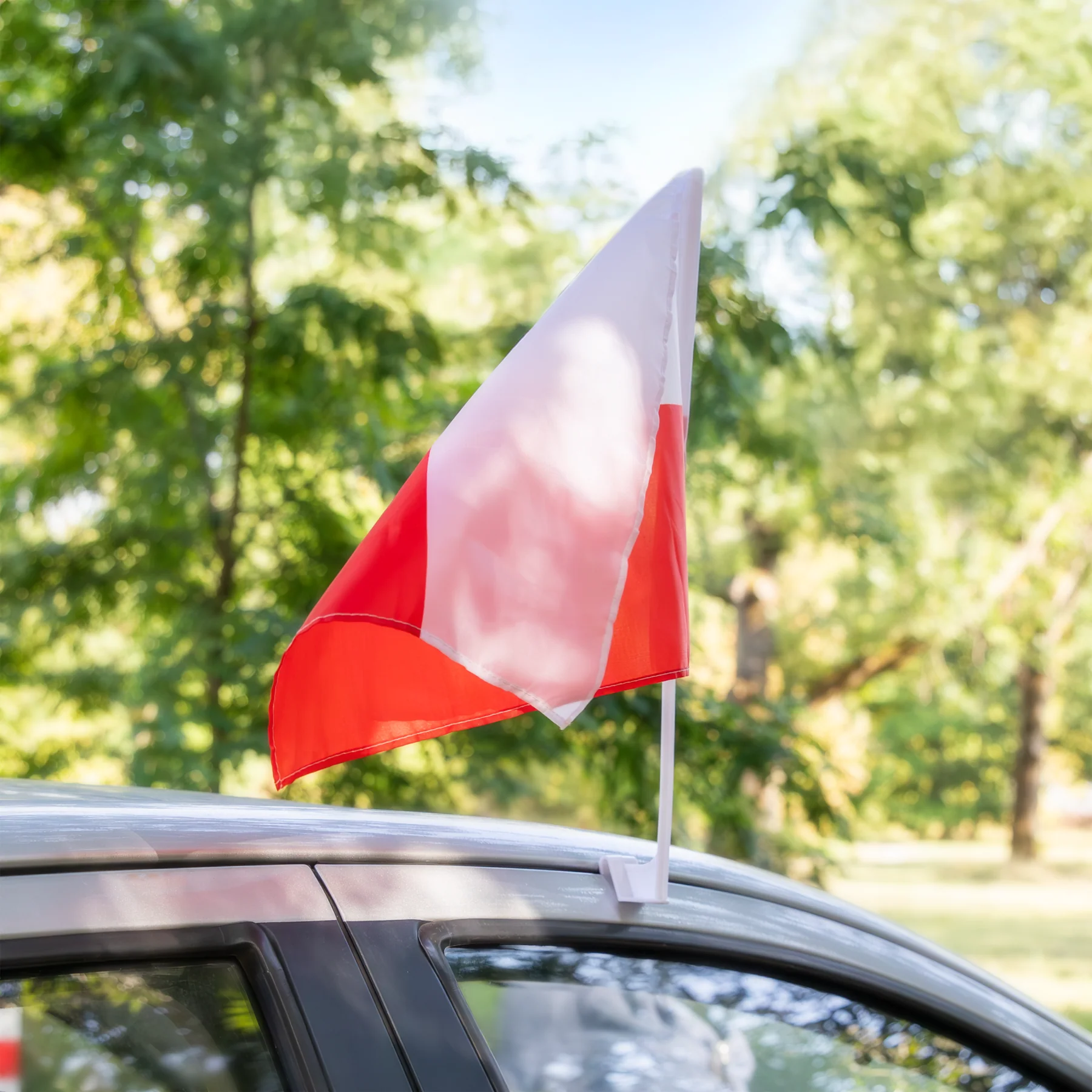 Pokaż swoje wsparcie i patriotyzm w trakcie świąt narodowych, meczów lub przejazdów okolicznościowych! Flaga Polski na samochód posiada solidny plastikowy uchwyt, który łatwo montuje się w szczelinie okna. Dzięki lekkiej, trwałej tkaninie, flaga pięknie powiewa podczas jazdy.