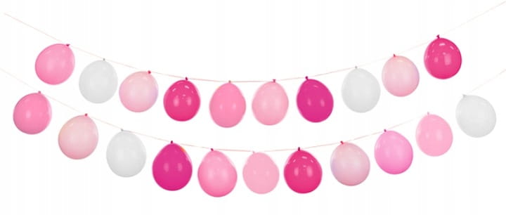- 20 balony lateksowe w różnych odcieniach różu i białego (średnica: 30 cm)