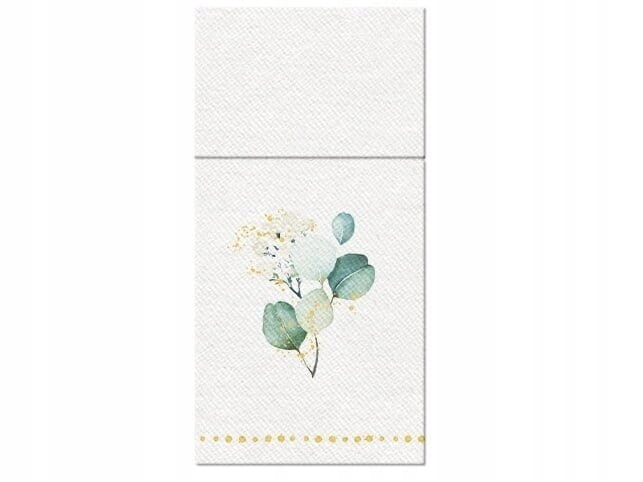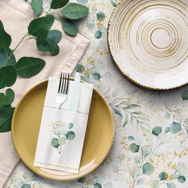 Organizując Chrzest dziecka warto zadbać o jego uroczystą oprawę. Wspaniały dodatek na uroczysty stół w postaci flizelinowych kieszonek na sztućce. Kieszonki posiadają modny motyw gałązek eukaliptusa oraz złoty połyskujący napis Chrzest Święty, dzięki czemu wpisują się w najnowsze trendy. Kieszonki są już złożone i gotowe do podawania sztućców.