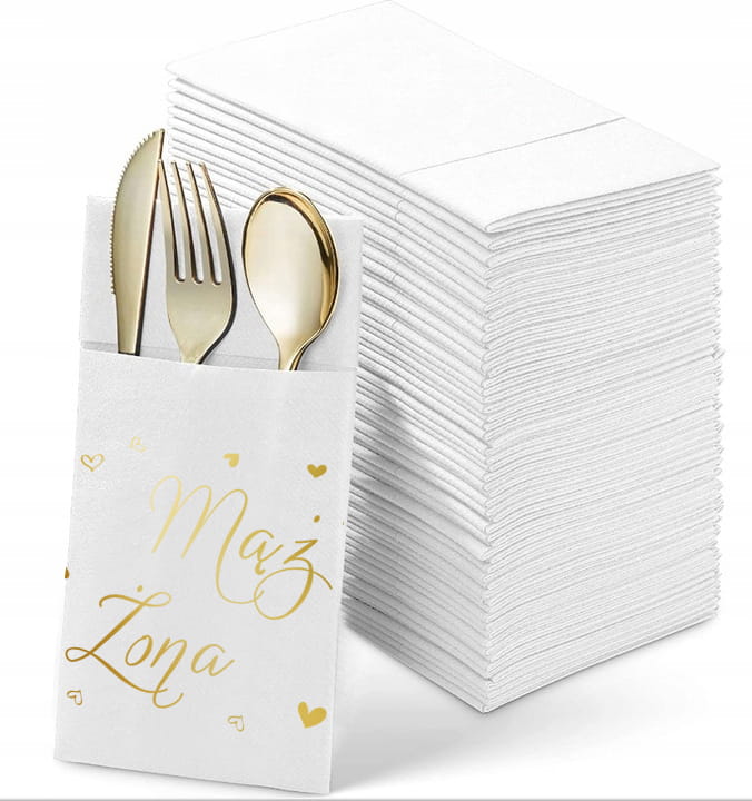 Kieszonki na sztućce Wesele, ślub, mąż żona 12szt
