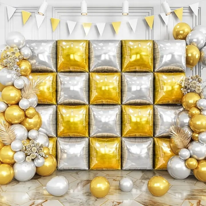Kurtyna balonowa złoto-srebrna 4 kostki. 47x47 cm