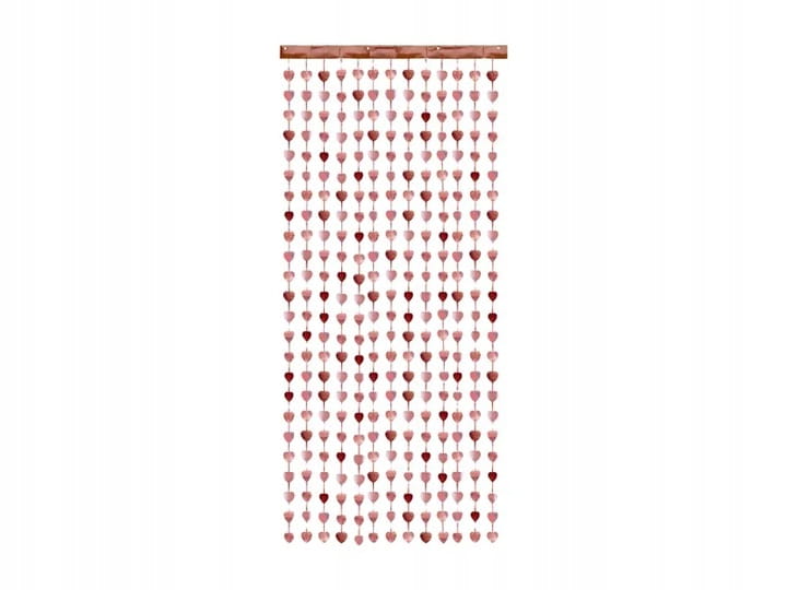 Kurtyna - Serca wykonana z folii w kolorze różowego złota. Przydatna na każdą okazję, urodziny, party, wesele, zabawy a także bale karnawałowe. Jest bardzo lekka, dlatego z łatwością można ją zawiesić w drzwiach / przejściu, oknach na ścianie lub ozdobić nią boki stołu.