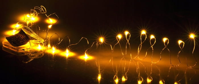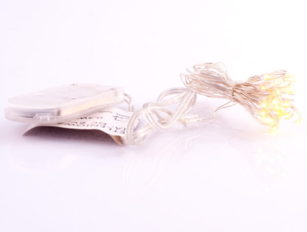 • W opakowaniu jeden sznur lampek z bateriami o długości ok 100 cm.