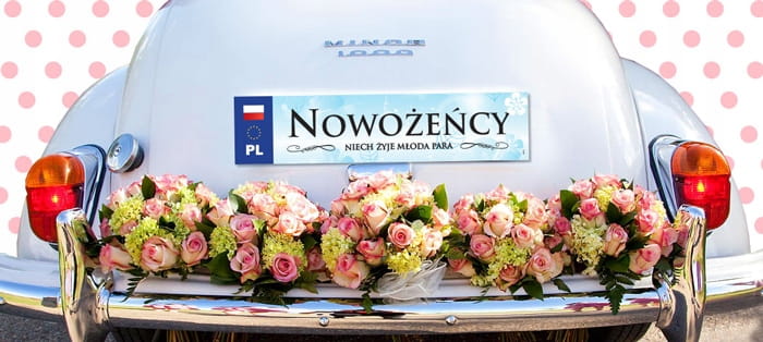 Nakładka ślubna na tablicę rejestracyjną Nowożeńcy