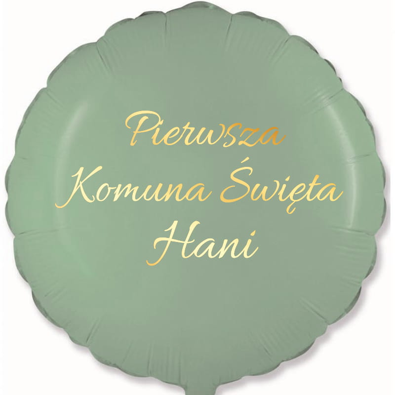 Okrągły Zielony Balon Personalizowany, Komunijny