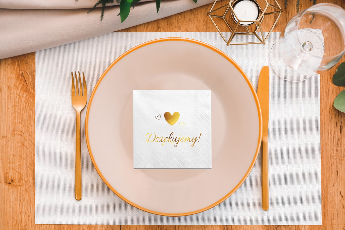 Serwetki 24x24 białe "Dziękujemy!" 12 szt.