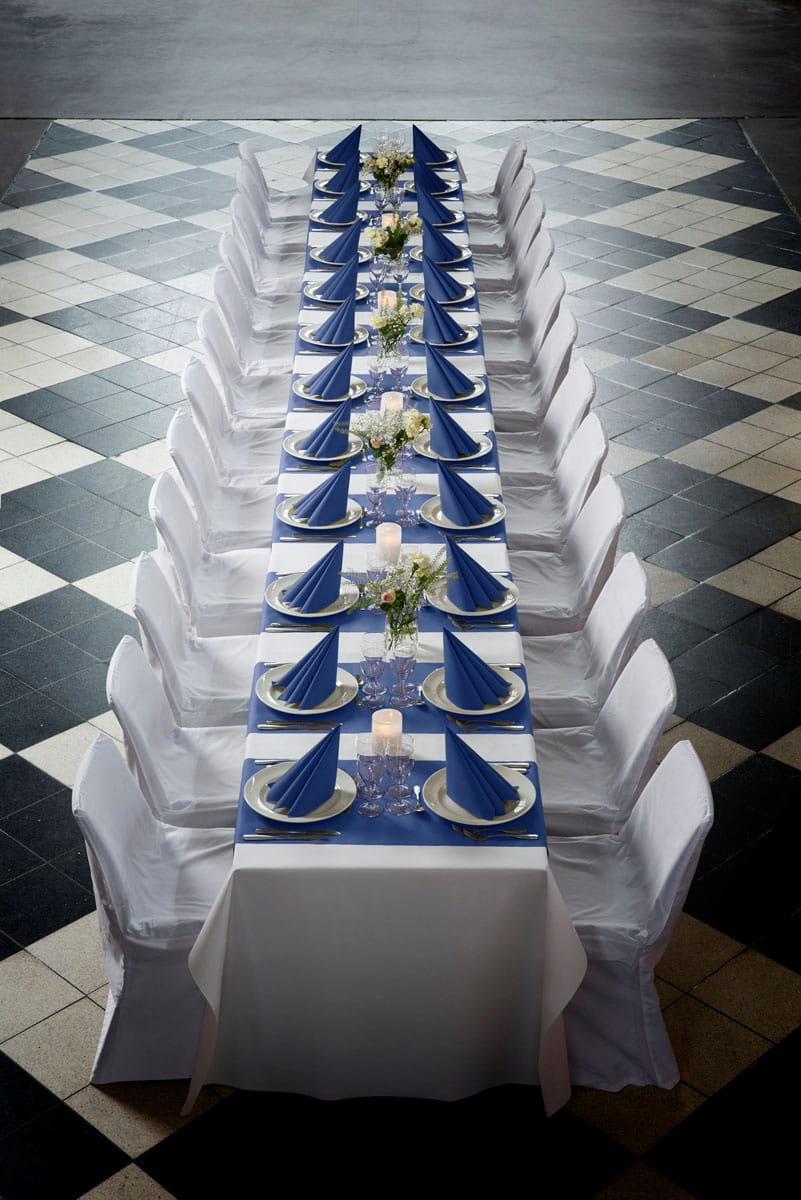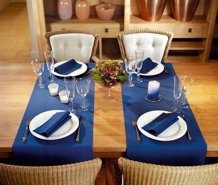 Serwetki w kolorze granatowym gładkie wykonane z wysoko gatunkowej flizeliny. Papier Airlaid ma unikalne właściwości fizyczne, takie jak wysoką elastyczność, miękkość, odczucie, doskonałe wyczucie pionowe, o wyjątkowo wysokiej absorpcji wody i dobrej skuteczności zatrzymywania wody. Serwetka ta do złudzenia przypomina prawdziwą tkaninę. Serwetki flizelinowe są grubsze oraz sztywniejsze od papierowych dzięki czemu można je układać w różne fantazyjne wzory.