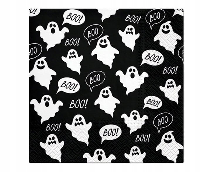 Serwetki papierowe na Halloween w kolorze czarnym z nadrukiem duszków wprowadzą strasznie fajny nastrój na Twoją imprezę. Wyrazisty nadruk wysokiej jakości ożywi stół i doda kolorytu. Serwetki to mała dekoracja na Halloween, która potrafi zrobić wielką różnicę.