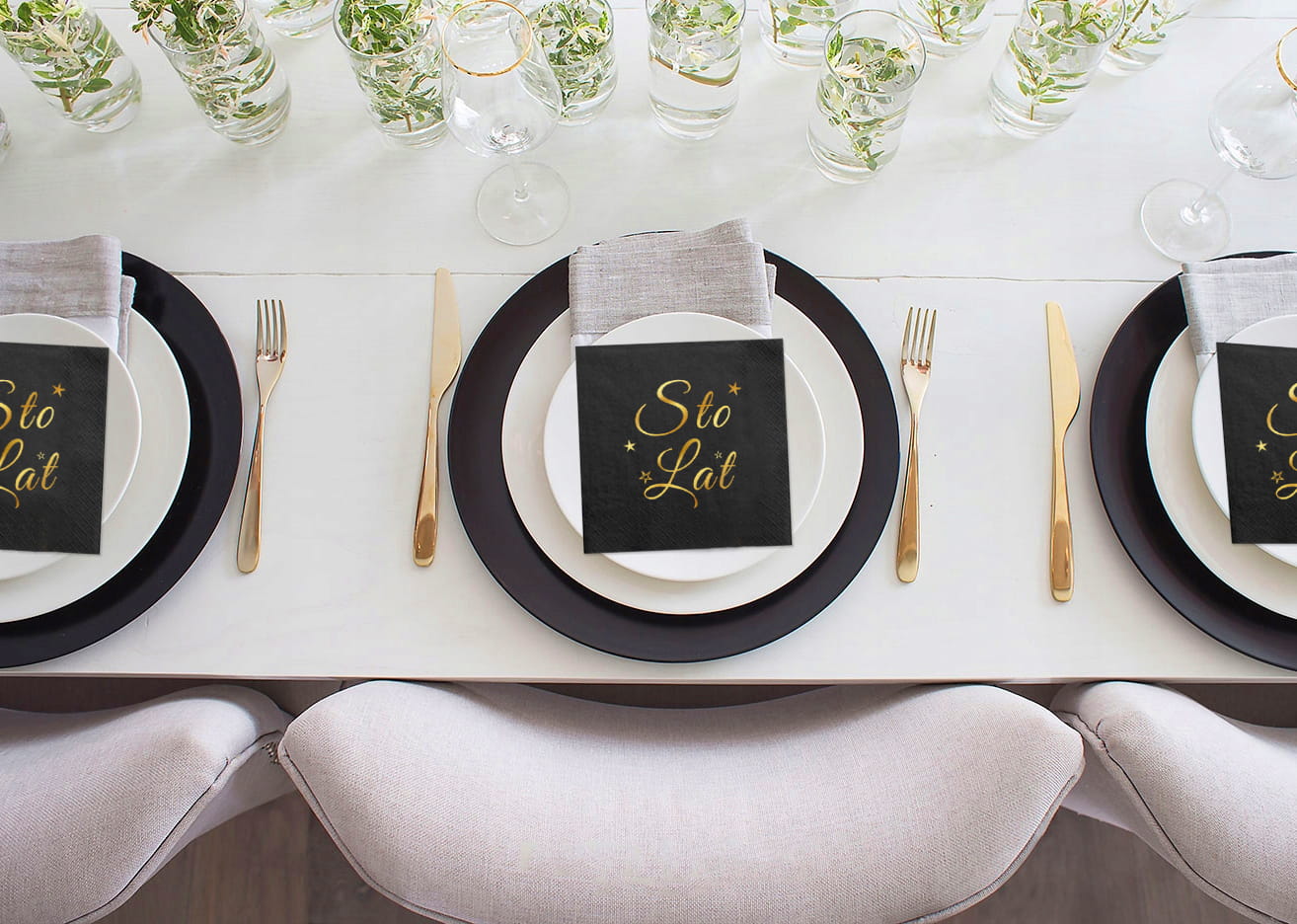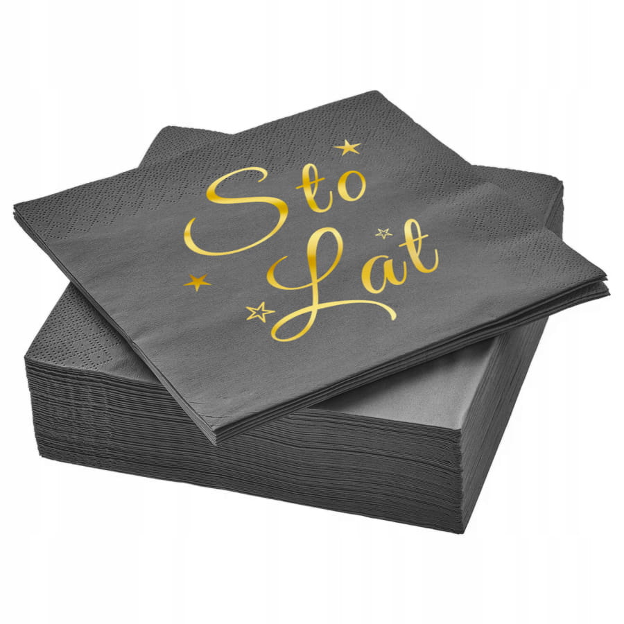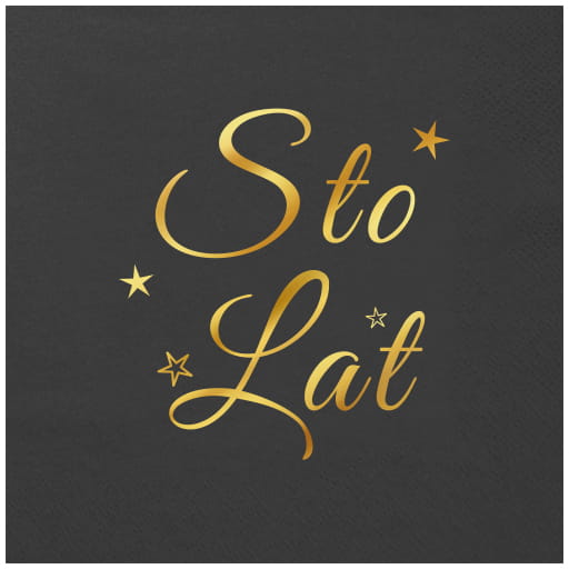 Serwetki Sto Lat, czarne, złocone, 33x33 cm, 12 szt.