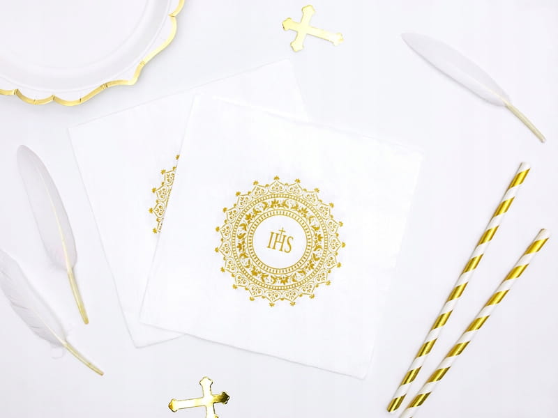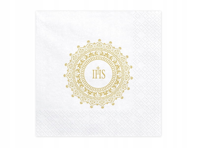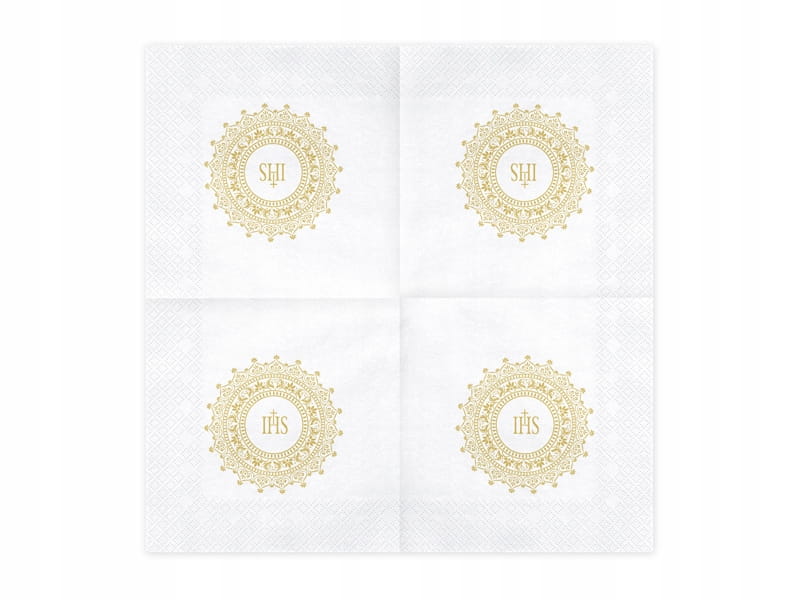 Serwetki komunijne białe złoty nadruk IHS Komuni