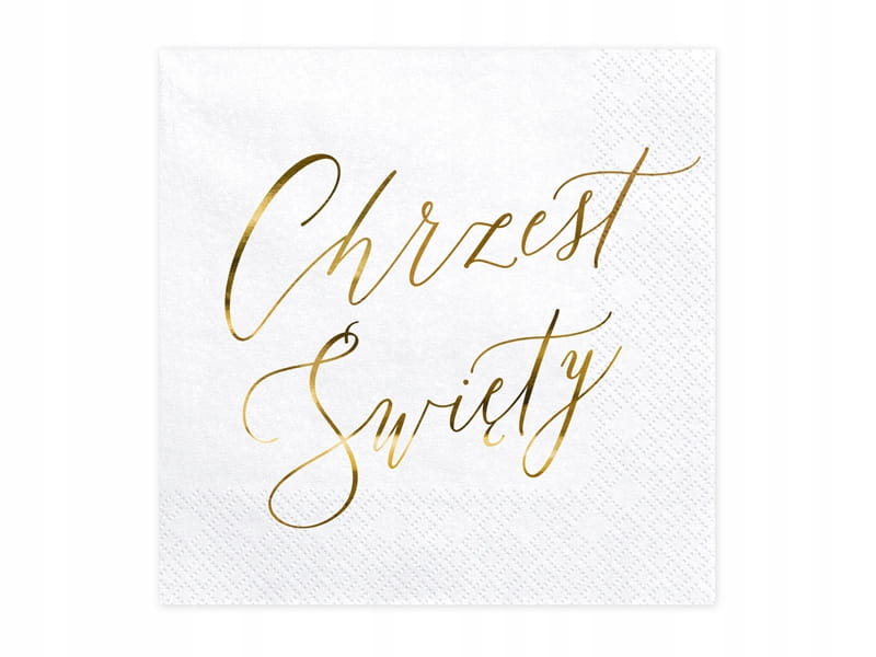 Serwetki na Chrzest Święty białe złoty napis 20 szt
