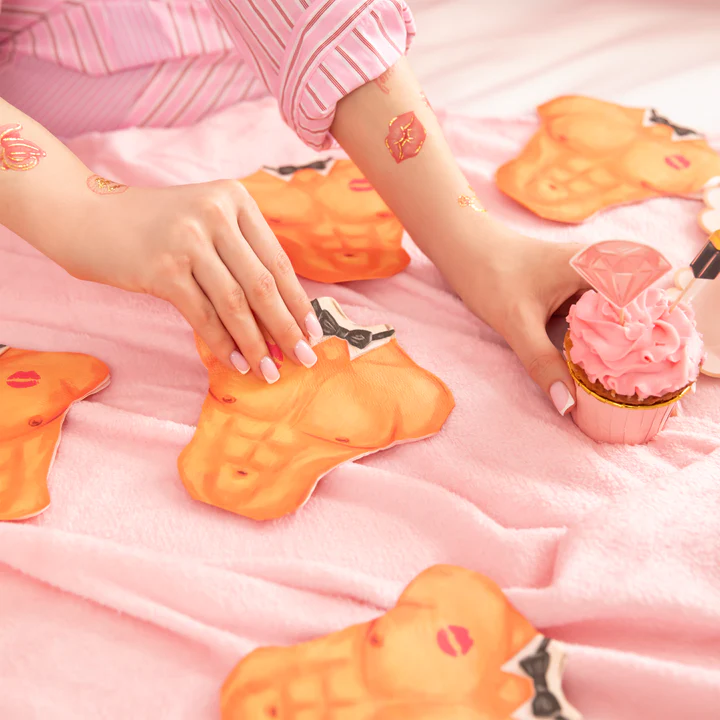 Te nietuzinkowe serwetki w kształcie męskiej klaty z muszką i odciskiem ust to absolutny hit każdego wieczoru panieńskiego! Stanowią świetny dodatek do stołu – zaskakują i rozbawiają gości. Świetnie sprawdzą się również jako element dekoracyjny lub gadżet do zdjęć.