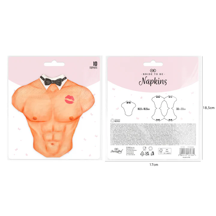 Serwetki w kształcie męskiego torsu – 10 sztuk, hit panieńskiego!