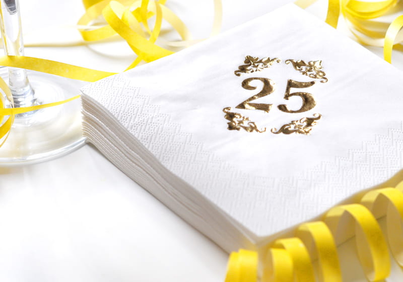 Serwetki urodzinowe na 25 urodziny białe 20 szt