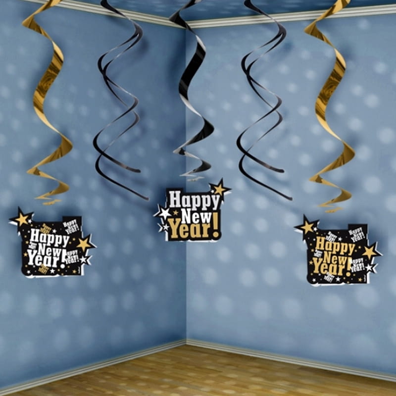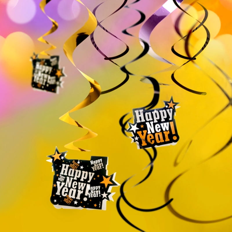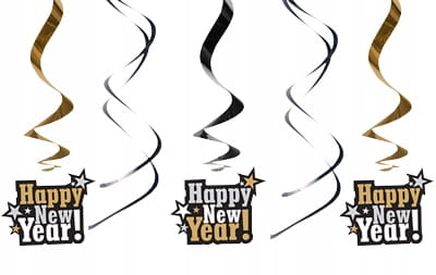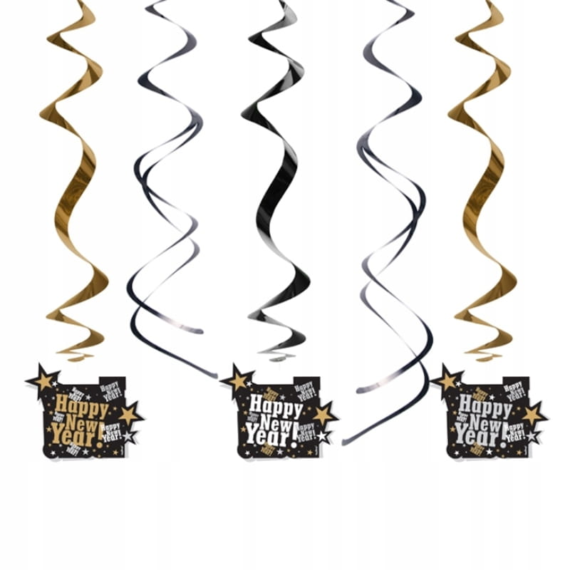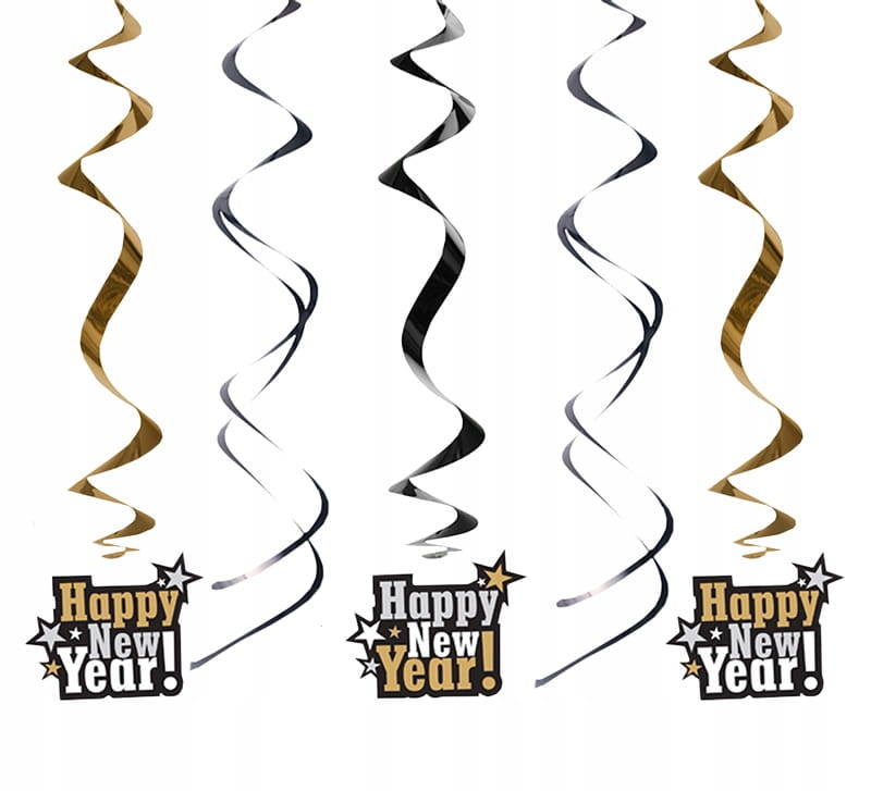 Świderki sylwestrowe „Happy New Year!” 60cm, 5 szt.