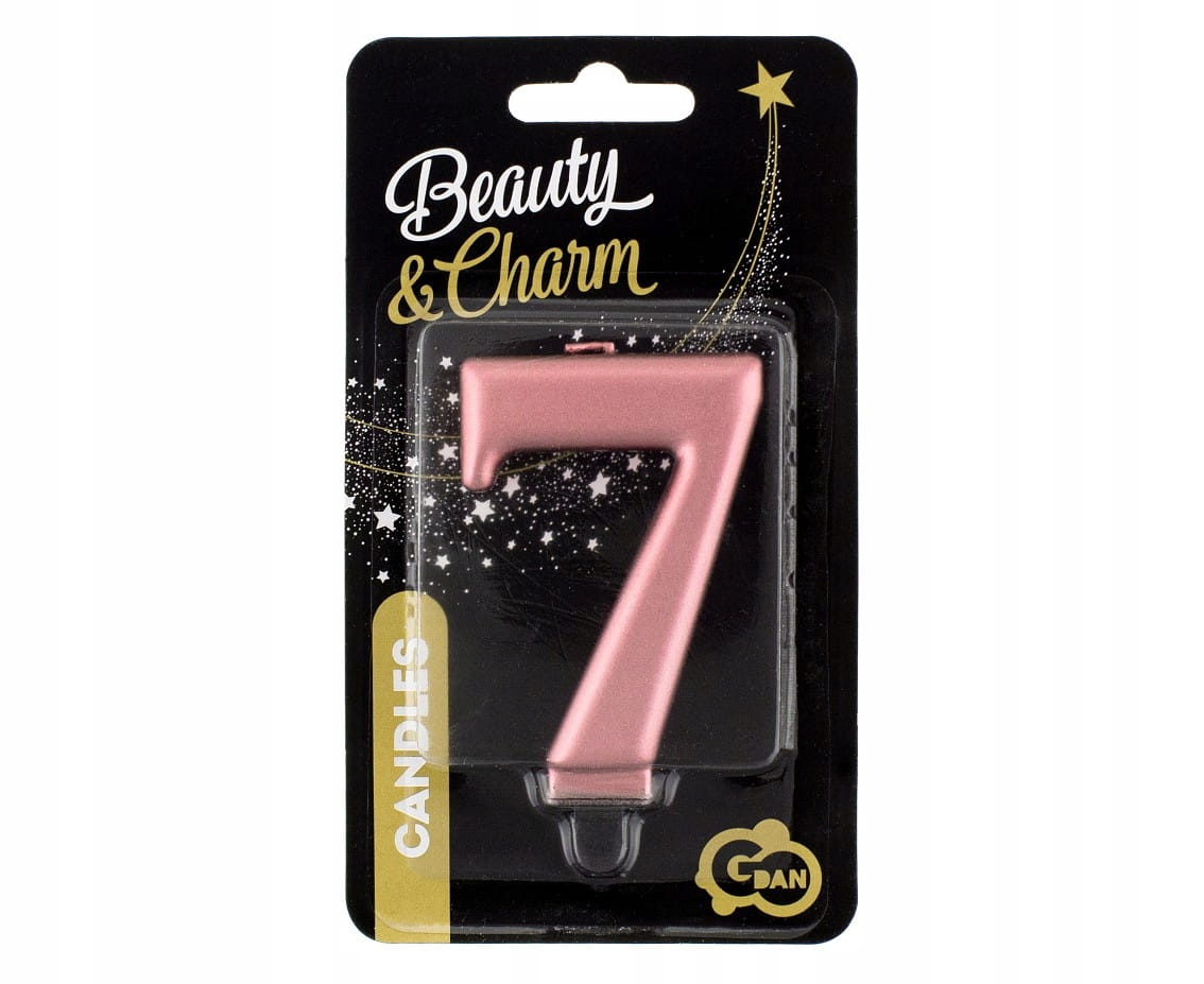Świeczka na tort cyfra 7 różowe złoto