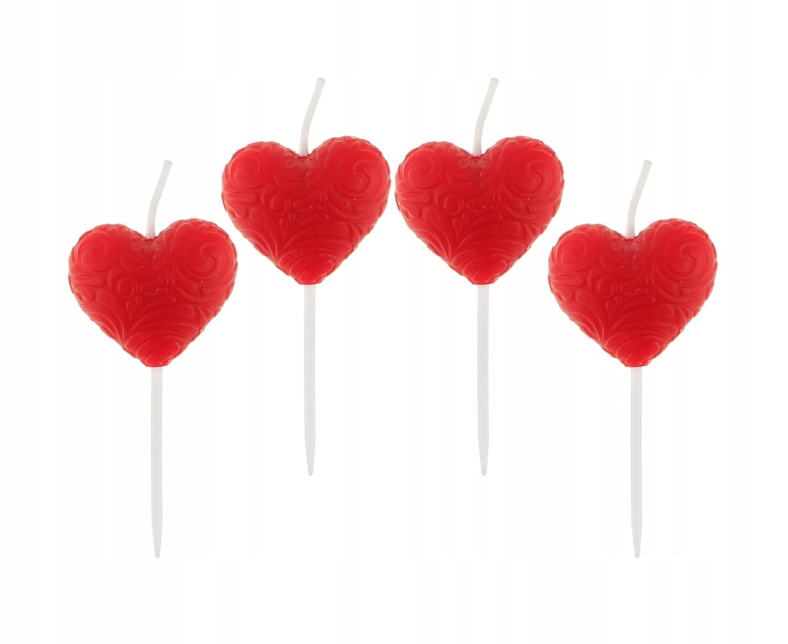 Świeczki pikery serca czerwone 4szt