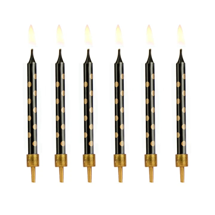 Świeczki urodzinowe czarne w złote kropki. Idealne na urodziny i wszystkie radosne okazje. Dzięki tym świeczkom Twoja impreza będzie na pewno niepowtarzalna. Odpal świeczki i rozpal urodzinowe emocje.