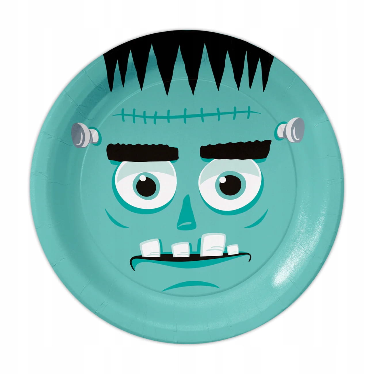 - Zestaw 6 szt. papierowych talerzy z motywami zombie, Frankensteina, wampira, kościotrupa, dyni, wampirzycy