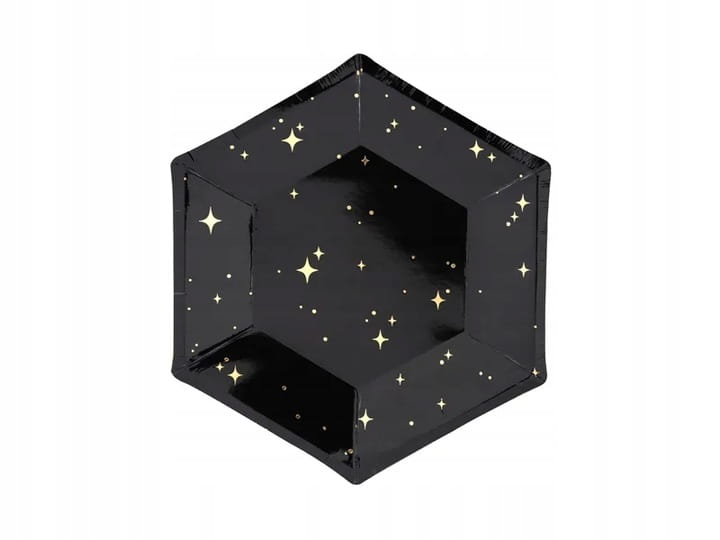 Talerzyki Papierowe Hexagon Czarne ze Złotymi Gwiazdkami