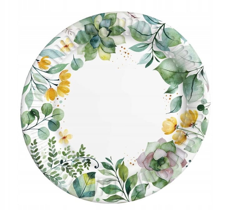 Stylowe talerze papierowe z pięknym motywem roślinnym to idealny wybór na różne okazje. Ich elegancki i naturalny design wprowadzi przyjemną atmosferę na każdym przyjęciu, zarówno w domu, jak i na świeżym powietrzu. Talerzyki są wykonane z wysokiej jakości papieru, co czyni je lekkimi, trwałymi i ekologicznymi. .